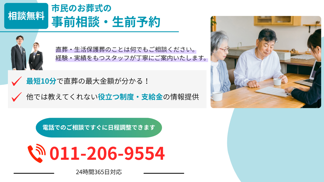 市民のお葬式は長年札幌の地で直葬の実績を積み上げてきました。